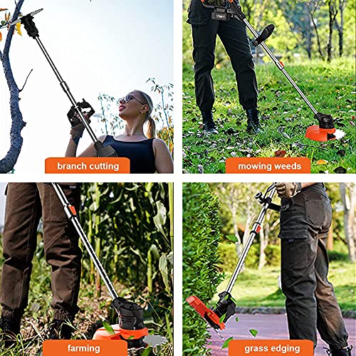 • RAND NEW TRIMMER STRING: — New cordless weed wacker with lithium battery, no plug-in board, brushless motor, adjustable length, rotating head, noise reduction design, dual control switch, alloy saw blade. Manufactured with high quality plastic, stainless steel tube, motor material, light and comfortable.
