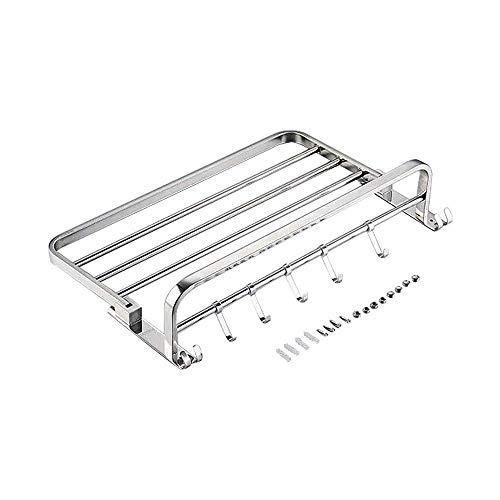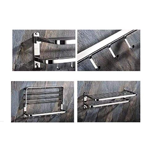 - 3.【Save Floor Space】Multifunctional foldable towel shelf, double towel bar and 5 towel hooks, Ideal for use in bedrooms, bathrooms, and closets.