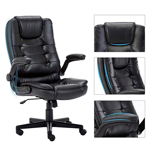 - 2. This high-back executive chair is decorated with high-quality PU leather. It is a durable synthetic leather resistant to oil and water, which can make office chairs smooth, beautiful and easy to clean. The wheels are almost no noise and will not damage the floor.