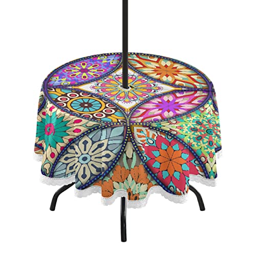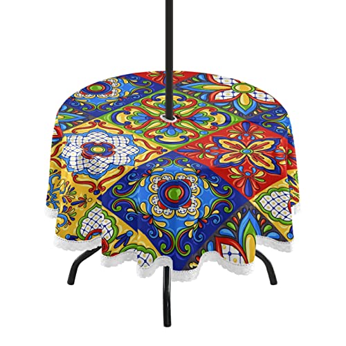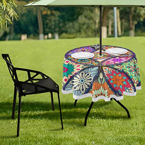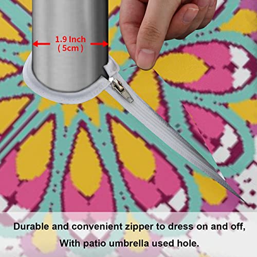 - ★ [PREMIUM QUALITY MATERIALS]-The round tablecloth is made of 100% polyester fiber, which has high heat resistance and can protect your table. The tablecloth has a zipper and a 1.9-inch center hole, which can be easily installed around the dining table umbrella. Easily open and close around the dining table umbrella, convenient for outdoor shade dining.