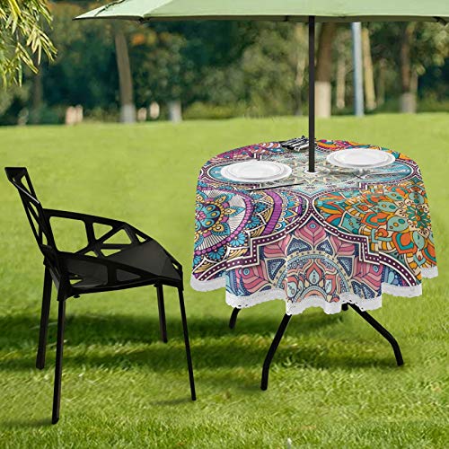 - SIZE - Measures 60 inches in diameter, including lace macrame length of 1.6 inches.Fit round patio tables with umbrella from 20-44 inch and seats 4-6 people.