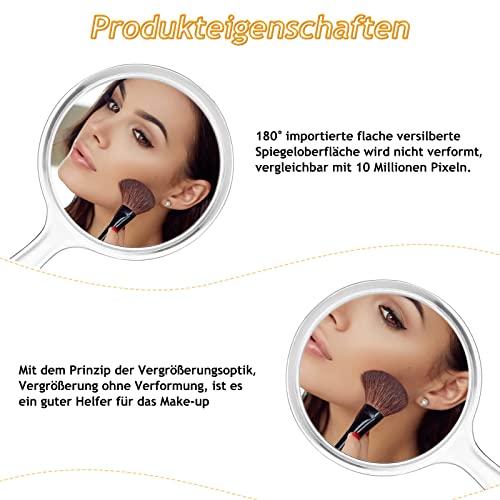 - 🪞【BEST GIFT】:Hand Mirror The transparent edge makes it look elegant and stylish, magnifying Makeup Mirror With 3xand the round shape is modern and stylish, makeup mirror for hairdresser perfect for your own use or as a great gift for your mother, sister, wife or other friends.