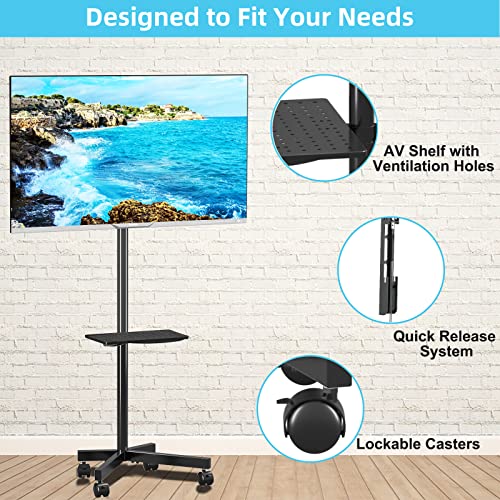XINLEI Mobile TV Stand on Wheels, Portable TV Trolley with Shelf for 21-60 inch Flat Curved Panel TVs up to 35kg, Height Adjustable Tall Rolling