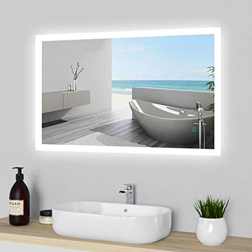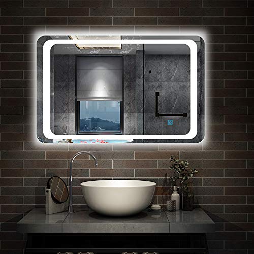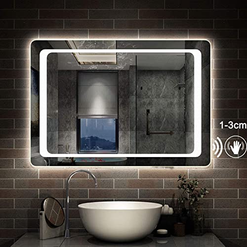 - Skin Sensitive LED Touch System---This illuminated bathroom mirror is equiped with Single Touch Control System,one button controls the led light and demister together