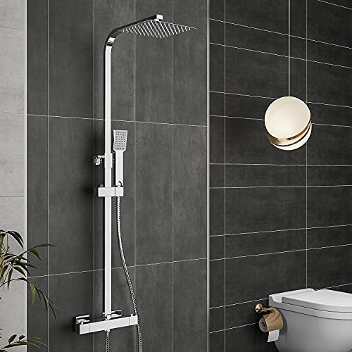 Home DIY & Tools Xinyang Thermostatic Shower Mixer Set Exposed Square 8″ Rain Overhead, Hand Held Shower Head
