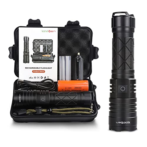 - ✅【BUY WITH CONFIDENCE】: Package contains: 1 x XLENTGEN 1780 rechargeable torch, 1 x 26650 battery, 1 x Type-C charging cable, 1 x 18650 battery tube, 1 x AAA battery holder, 1 x lanyard, 1 x product manual and gift box. We have carefully checked all items before delivery to ensure that the product works properly. We provide 7x24 customer service, if you have any questions about the LED torch, please feel free to contact us