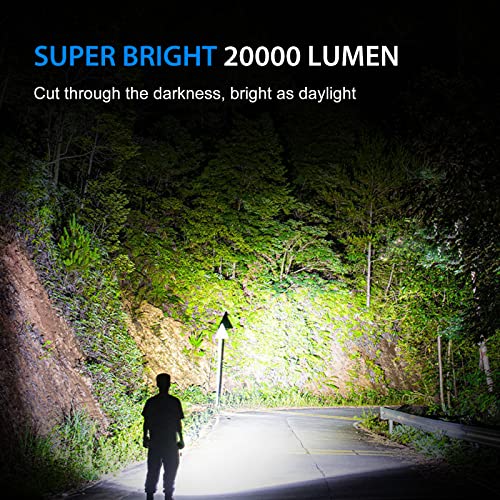 - ✅【TORCHES LED SUPER BRIGHT 20000 LUMENS】: The XLENTGEN 1780 LED torch features an upgraded XHP70.2 LED chip. This bright torch produces an ultra-high output of up to 20,000 lumens and can easily illuminate a 120 square meter room or focus on objects up to 1,000 feet away. The high powered torch is super bright and stable, ideal for camping, hiking, walking dog, or responding to emergencies