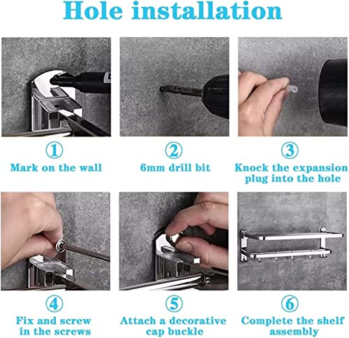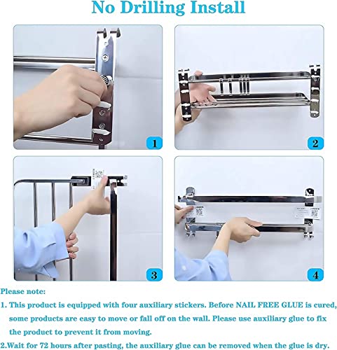 - [Nail-free installation] Nail-free adhesive can be used to install bathroom towel rack (accessories: installation instructions sticker, screw anchor, load up to 33 pounds), so you do not need to drill holes on the wall. You can also use our screws to fix the towel rack by drilling holes.