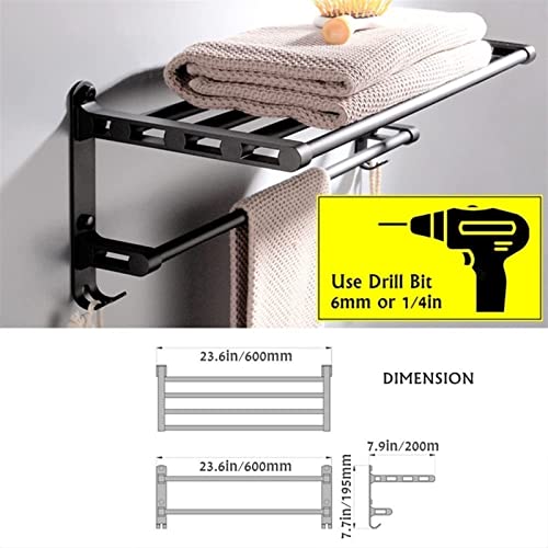 - Dimensions : 23.6x7.9x7.7inch / 600x200x195mm (LxWxH). Nearly 60cm towel shelf and rail, perfect for placing and hanging bath towels.