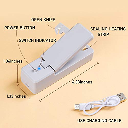 XUBX Mini Bag Sealer, 2 in 1 Handheld Heat Sealers & Cutter, USB Rechargeable Portable Plastic Bag Resealer with Magnetic Back Sealing Machine fo