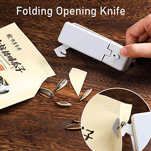 • 【2 in 1 Mini Sealer】This Bag sealer is a perfect tool to keep your snack, fruit snack, salad or any other healthy and safe food. It can seal multiple common packaging bags: coated aluminum foil bags, PP, PE, PVC bags. A cutter is hidden below sealer can be pulled out under sealer, is a very convenient life design.