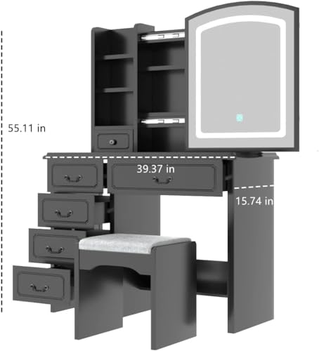 - 【Durable Material & Years Use】MDF board wooden vanity, 12mm thickness mirror frame, ensure the vanity sturdy enough. Perfect Size for Bedroom: 51.2x15.74x63in.