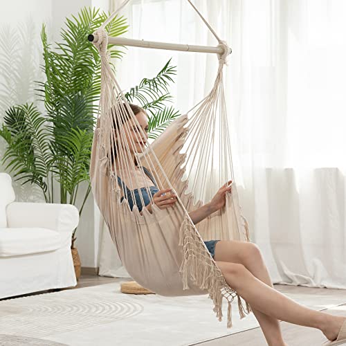 - Extemly Comfortable & Relaxing-This hammock chair is tightly woven with sturdy cotton and polyester fabric, high quality construction ensures this hammock chair will never tear or break with regular use.Allows you to lie down and enjoy full relaxation.