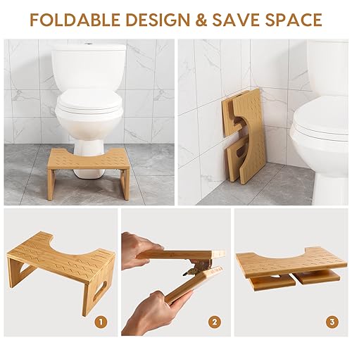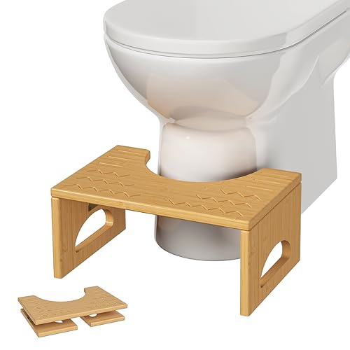 Yanacc Bamboo Collapsible Toilet Stool for Adults, Folding Toilet Poop Stool, Foldable Toilet Foot Step Stool for Bathroom, Bamboo Color