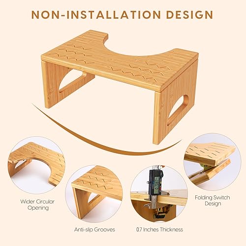 Home Bathroom Furniture Yanacc Bamboo Collapsible Toilet Stool for Adults, Folding Toilet Poop Stool, Foldable Toilet Foot Step Stool for Bathroom, Bamboo Color