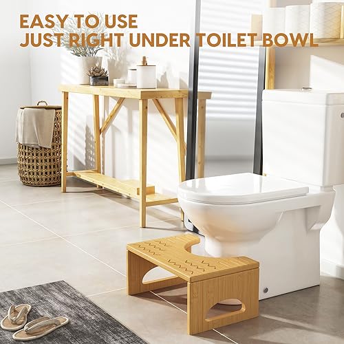 • [Bamboo Material]: This toilet steep stool is made of wooden bamboo material, more durable and stable than plastic toilet foot stool.