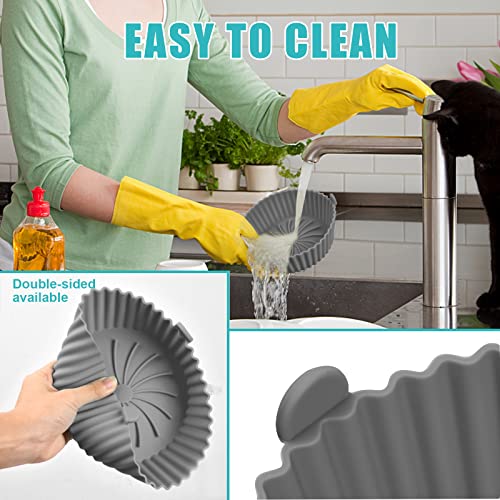 - 【Reusable and Easy to Clean】These air fryer silicone liners are reusable and will not deform or damage after hundreds of uses. Air fryer silicone pans are lightweight and soft, and can be hand washed, dishwasher safe, or boiled for high temperature sterilization.
