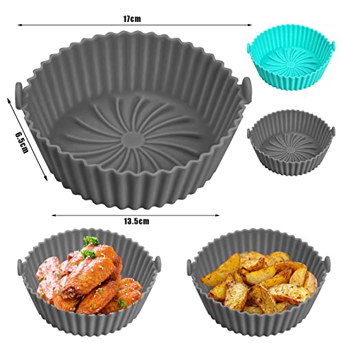 - 【Air Fryer Silicone Pan】You will get 1 round air fryer silicone pot. The Air Fryer Silicone Pan measures 15.5cm/6.1" in top diameter, 13cm/5.11" in bottom diameter, and 4.5cm/1.77" in depth.