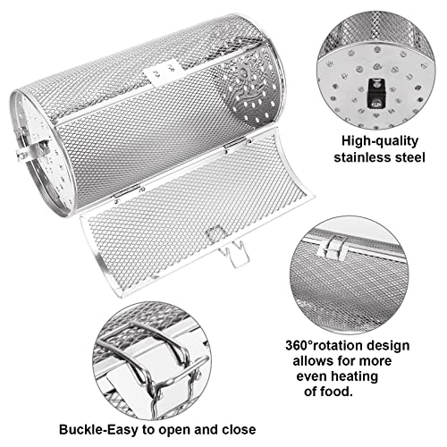 YAYODS Rotisserie Basket, 23x11.7CM Stainless Steel Rolling Grilling Basket, 360° Rotating Tower Rotisserie Basket for Tower Air Fryer, Rotisseri