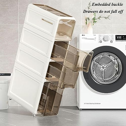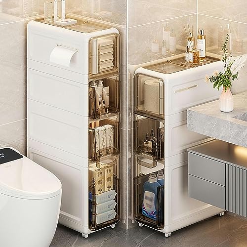 - ☛【Practical Design】Transparent bathroom organizer shelf can be visualized and easy to find things. The simple and beautiful grooved handles are easy to use. With non-slip wheels at the bottom, can be moved freely, labor-saving and convenient, cleaning without dead ends. Moreover, the surface of the boards are decorated with carved grooves, providing a touch of vitality to the pure white appearance.