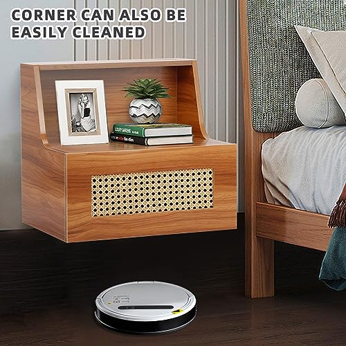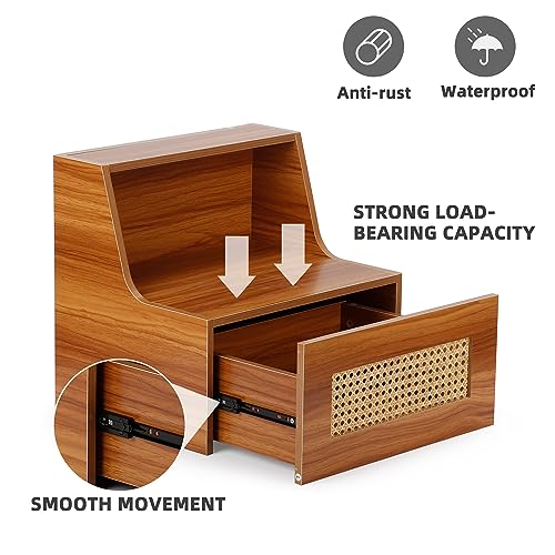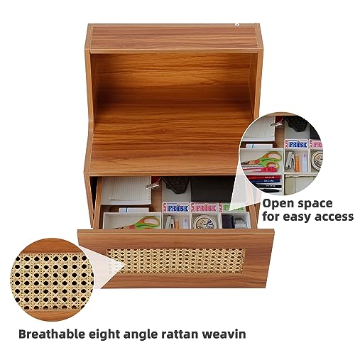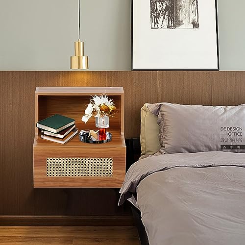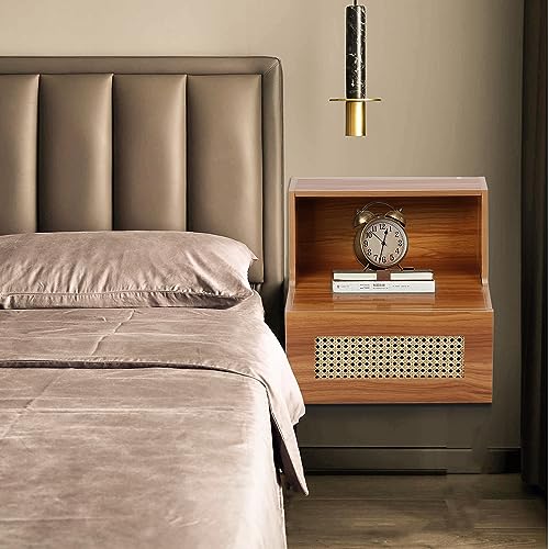 - ⚙Classic floating shelf : The rattan bedroom nightstand brings a stunning bohemian look to your home that is completed with beautiful cane wicker accents. This handcrafted nightstand is the perfect companion to any living space with its drawer and cabinet space for storing and organizing your clutter.