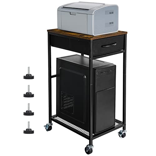 - 【Sturdy Frame】This CPU holder cart with shelf is made of sturdy iron mesh material, which can support most computers and devices. The 2 tier PC case floor stand can provide enough storage space, making it easy for you to arrange and allocate small printers, fax machines, or speakers. It also saves your desktop space
