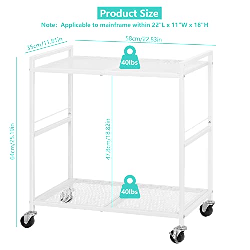 - 【Suitable for Most CPU Towers】The rolling computer tower stand can support up to 40 pounds per layer, and the bottom layer can accommodate computer towers smaller than 22 inches long x 11 inches wide x 18 inches high. The white appearance brings a modern and clean feel to your devices. You can also install footpads as needed