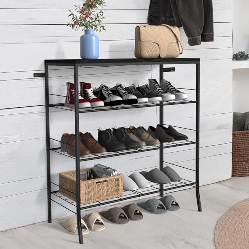 - Large capacity: The shoe rack dimensions are: 33.07 "L x 11.81"W x 36.22 "H, each layer is 9.45 inches high, with enough height and width to accommodate various types and sizes of shoes, store 9-12 pairs of shoes, and manage space effectively, Save floor space.