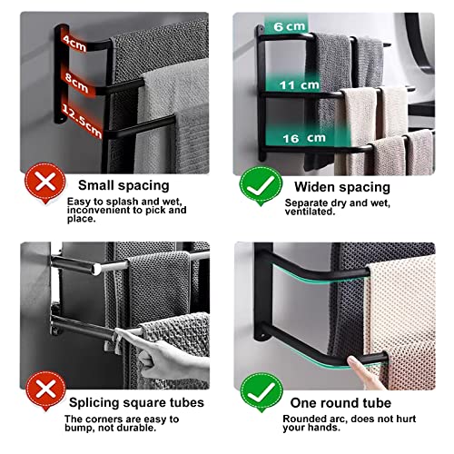 Yeegout 3 Tier Stainless Steel Towel Rack No Drilling for Bathroom Kitchen and Toilet Towel Holder 50cm Black