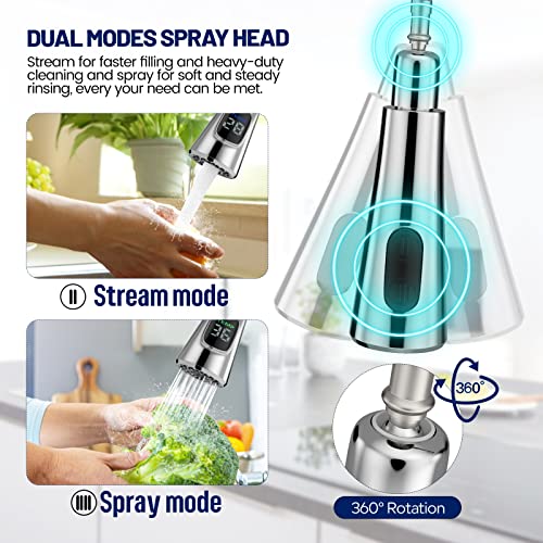 - 💦【Dual Function for All Your Needs】 This kitchen mixer tap comes with a dual-function spray head for a versatile washing experience that can be switched to suit your daily use. The stream modes are for faster filling and heavy-duty cleaning, and the spray modes are for soft and steady rinsing. Perfect for cleaning your sink, rinsing fruit & veg, or watering plants on your windowsill.