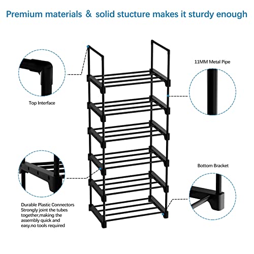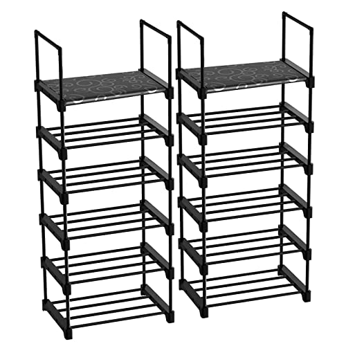 YIHATA 6-Tier Shoe Rack, 2 Pcs Metal Shoe Storage Organiser, Space-Saving Slim Adjustable Shoe Shelf for Closet, Entryway, Living Room, Bedroom,1