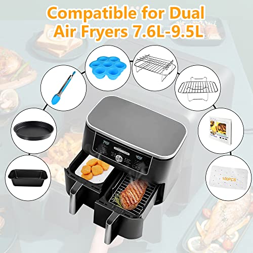 - 💖[Compatible for Dual Zone Air Fryer 7.6L-8.2L ]: YINGRACE double drawers air fryers accessories compatile with Ninja AF300UK 7.6L, Salter EK5196 7.6L, EK4548 8.2L, Devology 8L, Lakeland 8L, etc most 7.6L-8.2L dual zone air fryers.