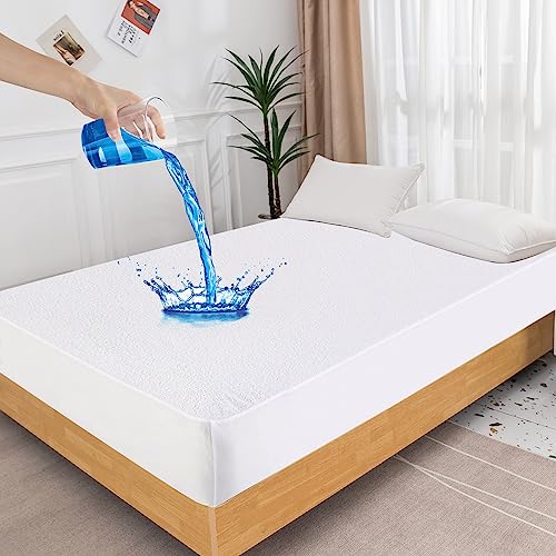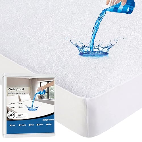 Home Bedroom Furniture Yinlnpaul Mattress Protector, Terry Cloth Mattress Protector Waterproof Backing, Noiseless Fitted Sheet Mattress Pad Cover,Full Size,Thick Padded