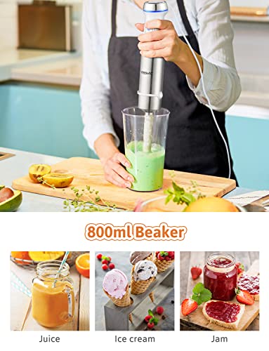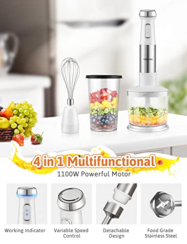 YISSVIC 1100W Hand Blender for Kitchen 4 in 1 Stick Blender with 800ml Beaker 500ml Food Chopper Variable Speed Control and Working Indicator