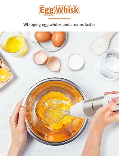 • Safe to Use: The hand mixer is lightweight and durable. All plastic parts are BPA-free and the blades are made of high-quality stainless steel with anti-splash housing can prevent food spattering under high stirring speed