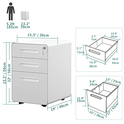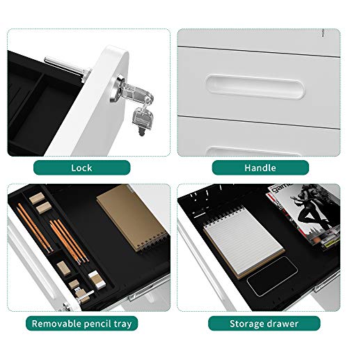 - 【Durable & Sturdy】The entire file cabinet, including the inner lining of all drawers, is built using robust, heavy-duty steel with environmentally friendly finish for long-lasting durability. The file cabinet can bear up to 149.69kg. It is sturdy enough to put printer on it without any dents