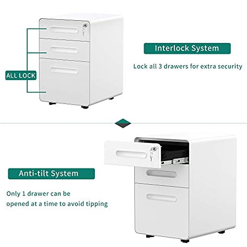 - 【User-friendly Locking Mechanism】The interlock system secures 3 drawers and comes with two keys to protect your files and valuables. As a safety mechanism to avoid tipping, only 1 drawer can be opened at a time
