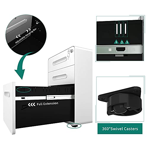 - 【 Convenient & Free-range Mobility】 Rolling file cabinet (no need to install except casters) with rounded corners and inset handles, You only need to install 4 x 360° swivel casters. Easy and safe to move