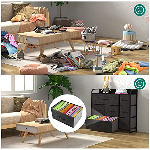 • VERSATILE COLOR SCHEME- Premium cool grey fabric drawers, sturdy black metal frame and waterproof wooden tabletop combined into a sleek, modern design. Looks great in any space – living rooms, bedrooms, hallways, entryways, closets, nurseries, etc.