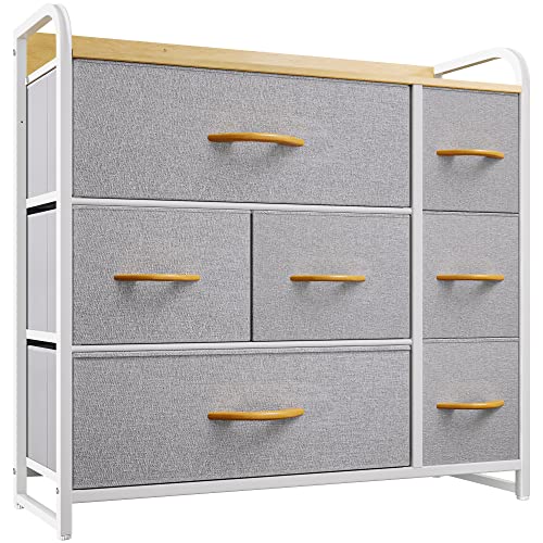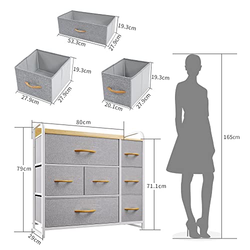 - HIGH CAPACITY- 7 drawers of different sizes provide more storage choices, and sufficient space creates a neat and clean space for your bedroom or living room. Overall dimensions: 80 x 29 x 79 cm (L x W x H).Drawer dimensions: 53 x 28 x 19 cm (L x W x H) / 20 x 28 x 19 cm (L x W x H) / 28 x 28 x 19 cm (L x W x H)