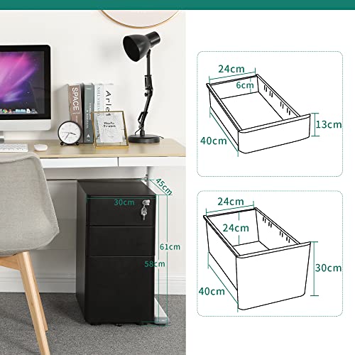 - LOCKABLE, ANTI-TIPPING DETAILS - Rolling file cabinet features 5 casters, four rolling 360° swivel casters for optimal mobility, and a auxiliary caster prevents product from tipping over; lockable file cabinet with 1 lock and 2 keys can secure all office drawers.