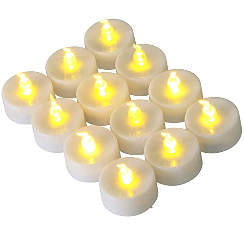 YiYFiT Classic LED Tea Lights Candles,12-Pack Flameless Tealight Candles Battery Candles Flickering Fake Candles for Christmas,Halloween,Party,Fe