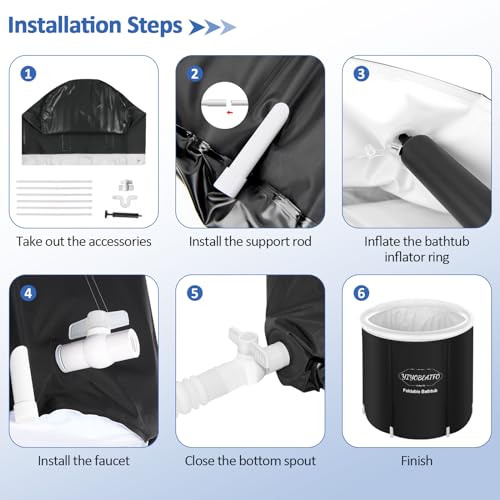 - 🆗【EASY TO USE】: This collapsible ice tub is quick and easy to install, using a sturdy and stable six-point stand that is not only stable and safe, but also easy to store and carry, whether it's indoors or outdoors, it's easy to enjoy the spa, whether you're traveling, in a dorm room or moving to a new home.
