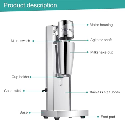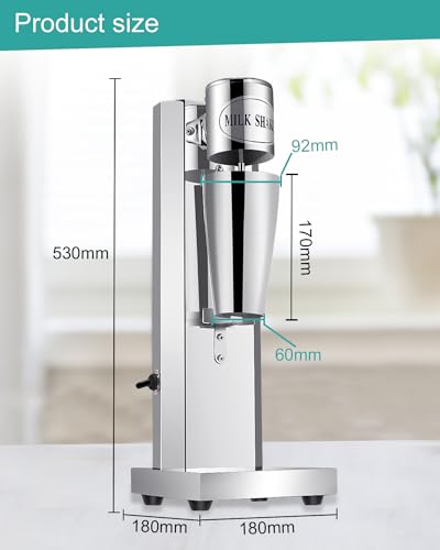 - ★【280W High Power & Stainless Steel Motor Shell】Commercial milkshake machine adopts pure copper motor with strong anti-pressure and anti-breakage force to protect the motor from being easily damaged. Rotating speed up to 16000RPM, fast mixing speed, about 16 times/min, can be quickly stirred drinks.