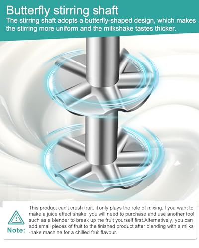 - 【Butterfly Stirring Shaft】Double stirring shaft adopts butterfly design, 360°high-speed vortex, reducing resistance, making the mixing more even and the milkshake taste more thick. And the mixing shaft is made of food-grade stainless steel, which is safe to use and durable, not easy to rust, and easy to clean after use.