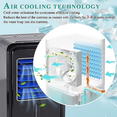 • 【Air Cooling Technology】The host of the sleep cooling system cools the water through air cooling technology, and circulates the water flow to the mattress through the built-in plumbing system to achieve the cooling effect, which reduces the heat by 3-8 degrees, and can provide you with a cooler and more comfortable sleeping environment in summer or hot weather.