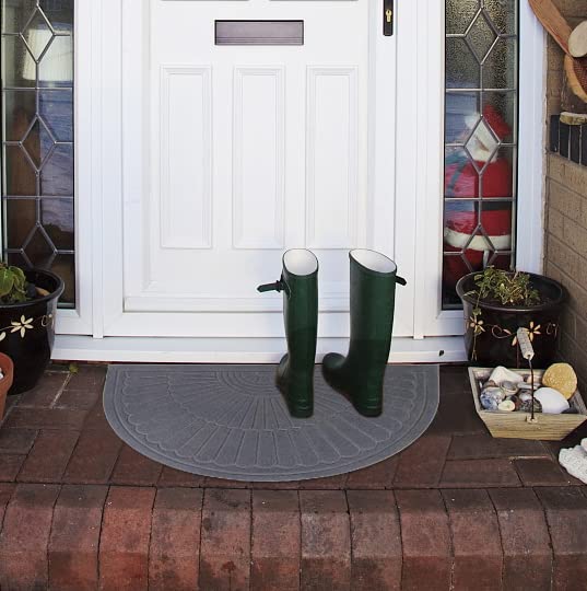 - Door mats inside: This half round entrance mat measures 29.5" x 17.7". Widely used for outdoor front door, exterior patio entry way, porch door, garage, garden, office, business, living spaces with high traffic inside and outside.
