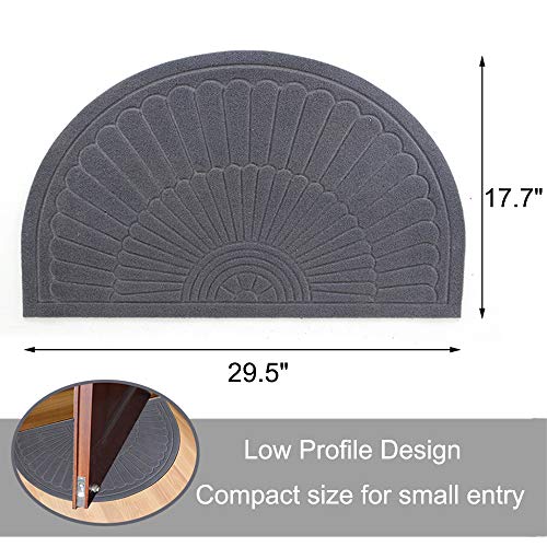 - Low Profile Door Mat: Low Profile design is thin enough for your front door, ensure not trap the door. This half moon doormat will add a unique touch to your front door or back door.