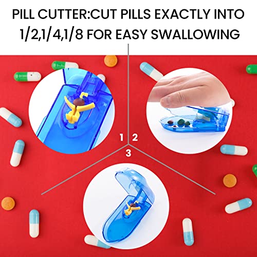 - [With pill cutter] Spring design, open or close can be operated by one hand; with the pill cutter, it is more convenient to cut the pill.
