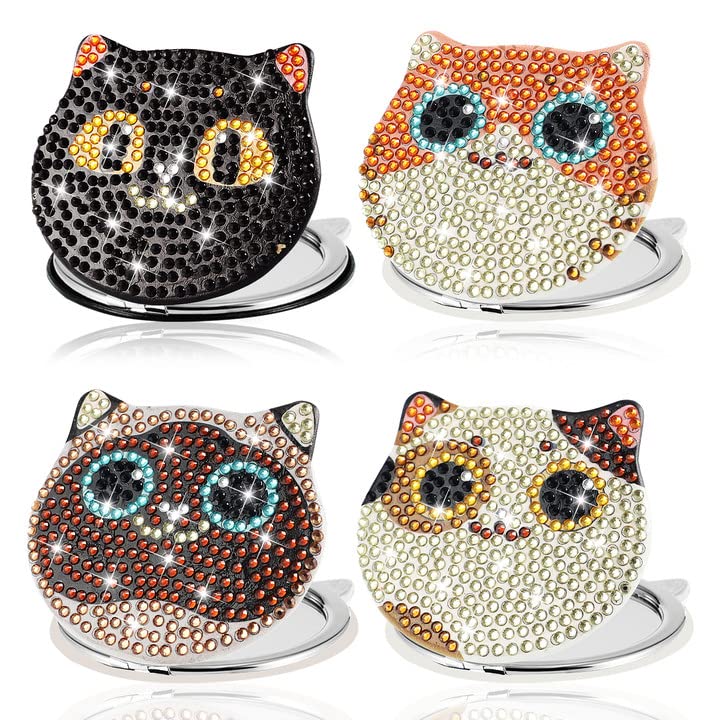 - What's in the Package: you will receive 4 pieces of diamond painting pocket mirrors in different shapes and styles, 4 pieces cat painting pattern for cat face shape, enough to meet your DIY needs, and you can share them with your friends and family members